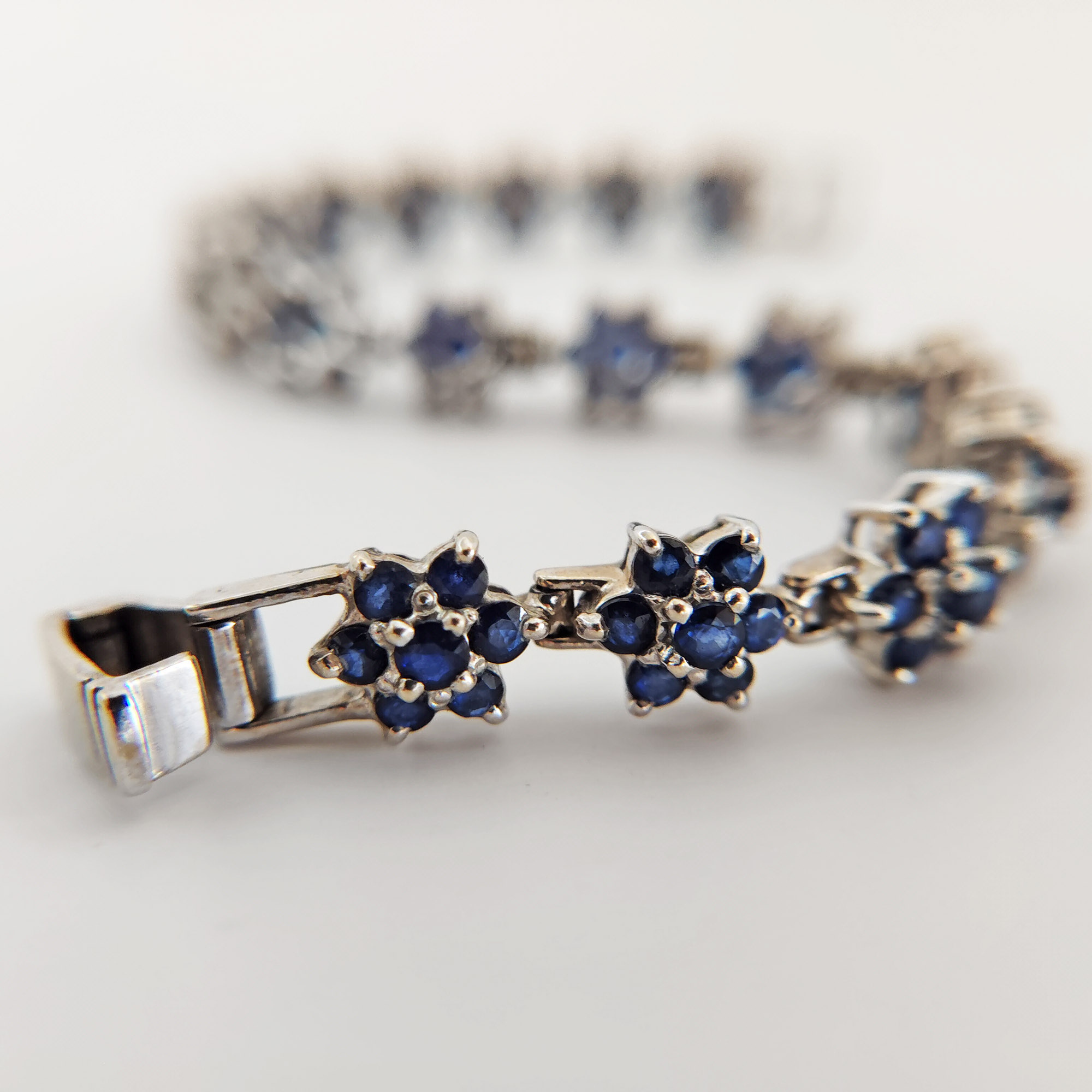 A 14K white gold blue sapphire bracelet. It has 119 pieces of blue sapphire. Got this from a lady in Manila who bought them in Cambodia. It’s not vintage but a little over 20 years old. She acquired a lot of jewelry over the years and has decided to let go of some pieces. It’s been gently cleaned and in good condition.