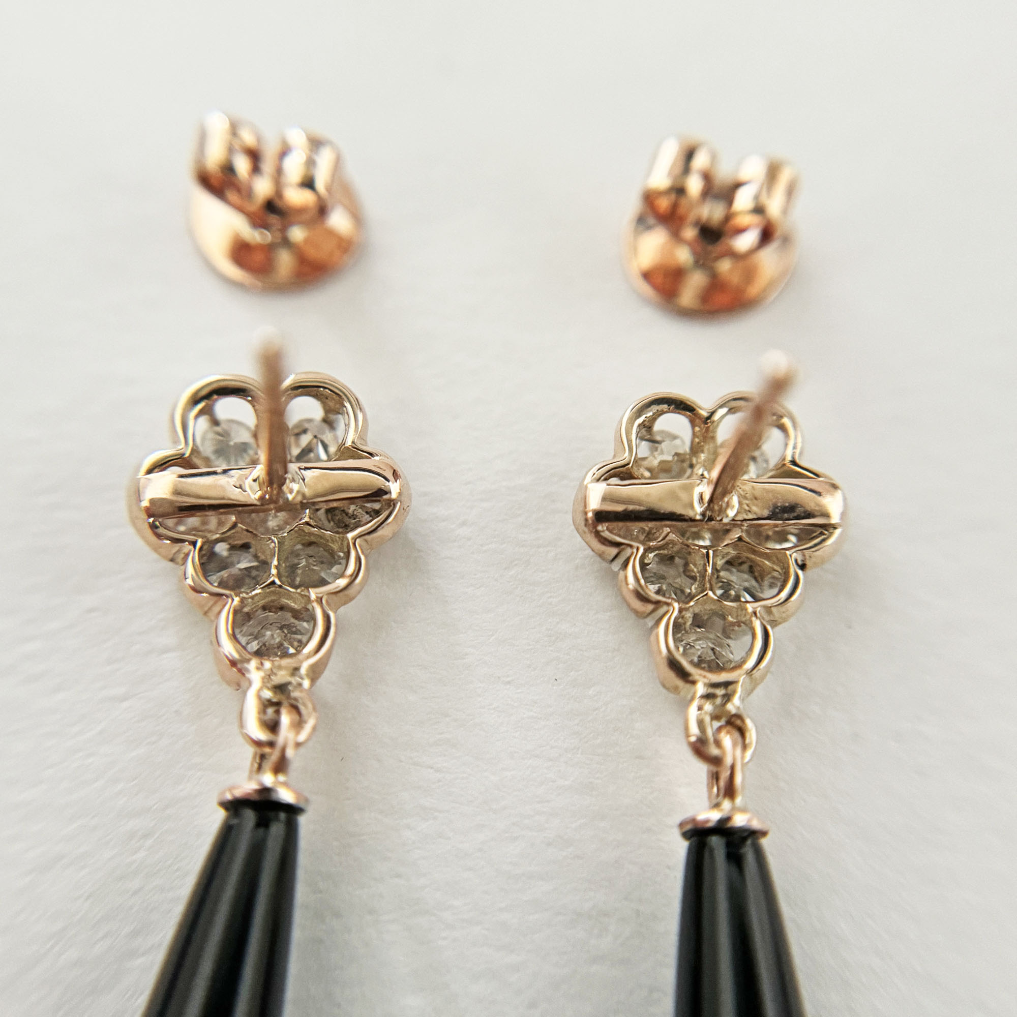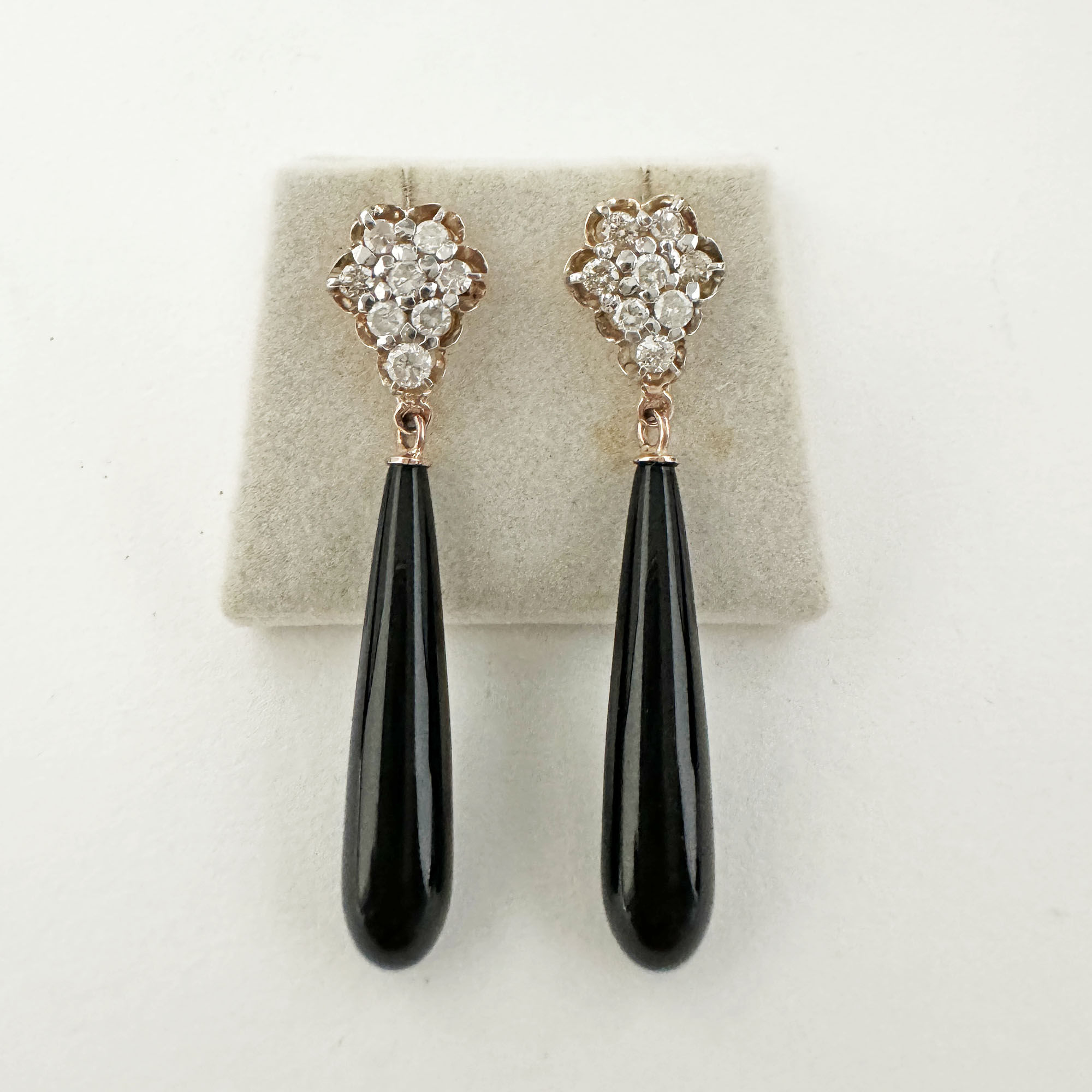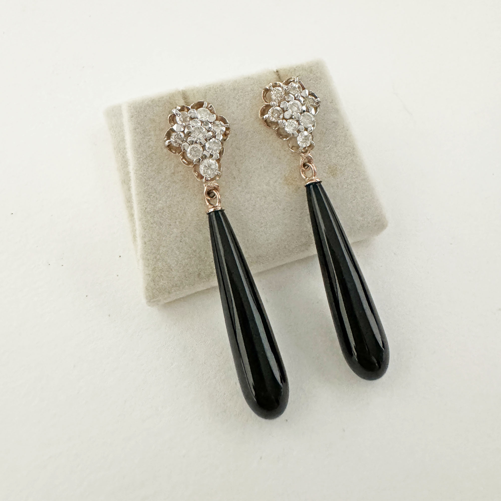 The new black agate or onyx drops were added to give it a very Victorian look. It’s been professionally cleaned and in good condition.