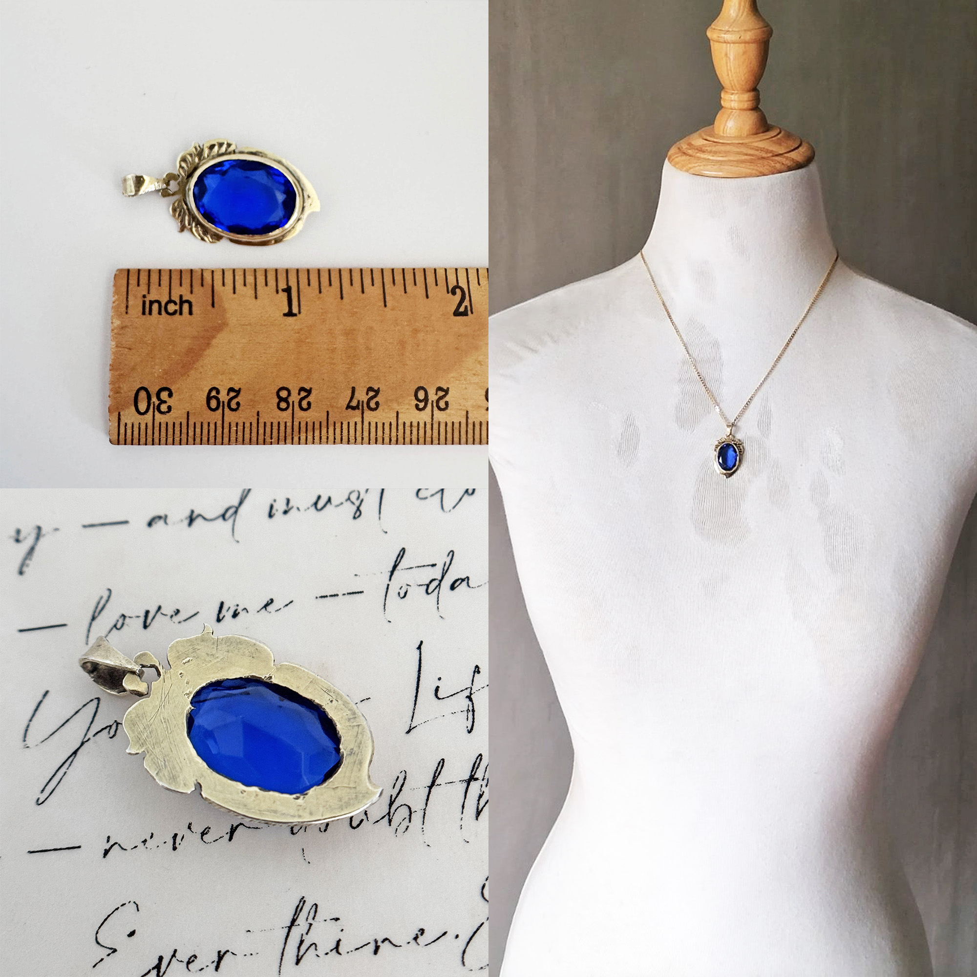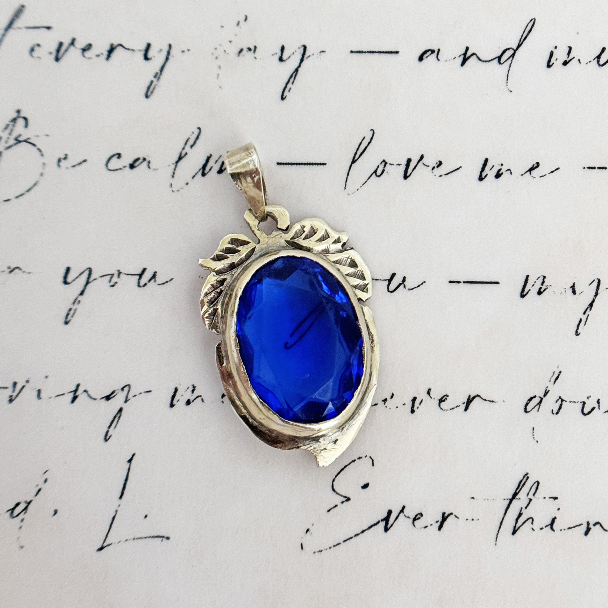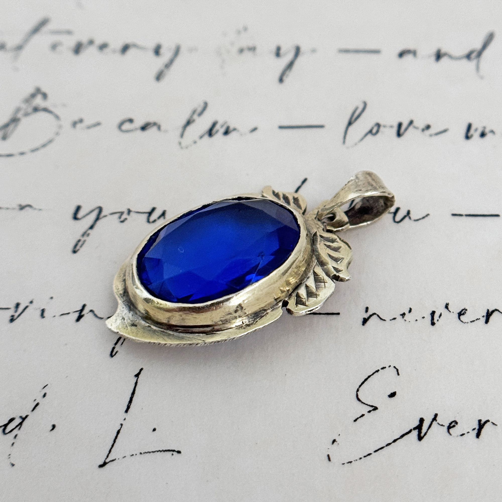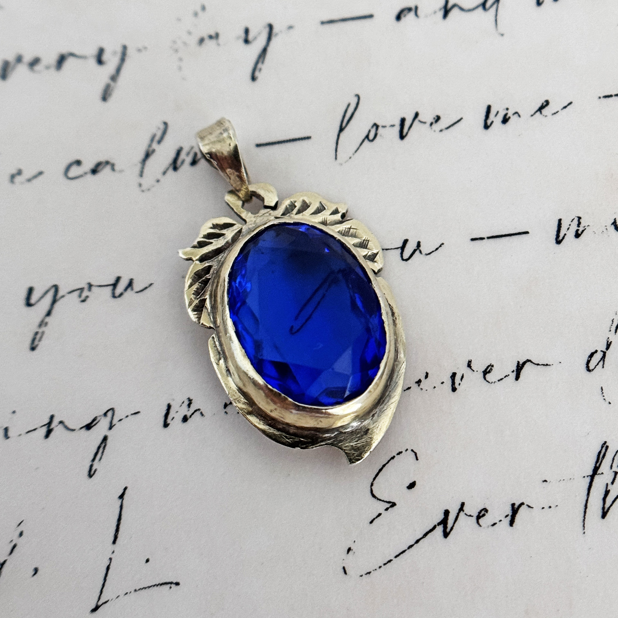A vintage silver pendant with a vibrant blue synthetic stone from the Philippines. It’s been gently cleaned and in good vintage condition. Bale is big enough to fit most chains. Chain NOT included.